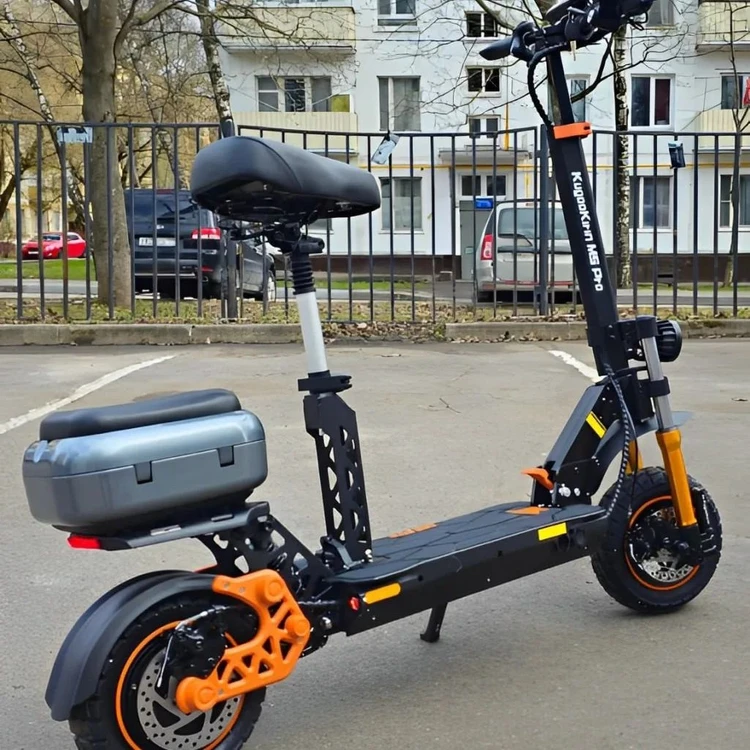 اسکوتر برقی ام 5 پرو یکی از بهترین اسکوتر از نظر جنس بدنه و آلیاژ به کار رفته بین اسکوتر برقی هست که معروف به لندکروز اسکوتر ها میباشد. استفاده از این دستگاه مناسب از سنین 10 سال به بالا واسه خانم ها و آقایان میباشد. و در این محصول از باتری با ولتاژ 48 ولت با ظرفیت 21 آمپر استفاده شده. و با این مشخصات میتوانید تا مسافت بین 55 تا 60 کیلومتر با سرعت 70 کیلومتر بر ساعت طی کنید. آلیازی که در ساخت اسکوتر به کار رفته باعث بالا رفتن استحکام بدنه شده که میتوانید در مسیر های پر از سنگلاخ و جاهایی مثل کوه و جنگل ها استفاده کنید. و در این دستگاه از کمک پمپی جلو و عقب استفاده شده که بتوانید از این دستگاه راحت در مسیر های پر از شیب و چاله استفاده کنید. این دستگاه دارای یک باکس عقب با صندلی عقب میباشد . که بتوانید دونفره استفاده کنید. و صندلی جلو قابل تنظیم میباشد. نکاتی که باید هنگام استفاده از این دستگاه رعایت کنید. این دستگاه را کارواش یا با آب فشار شدید نشورید. و این دستگاه را با شارژ خالی باتری کنار نگذارید زمانی که شارژ باتریس دستگاه تمام میشود حتما به شارژ بزنید و یا هر 1 تا 2 ماه یک بار از این دستگاه استفاده کنید یا به شارژ بزنید باتری آسیب نبیند.و در سربالایی یا شیب بالای 30 درجه استفاده نکنید. روی هاب موتور و یا درایور دستگاه فشار میاد باعث خراب شدن میشود.